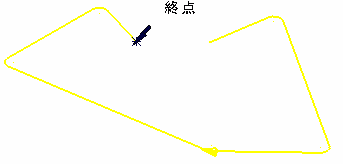 - 切り取り位置でカーブをクリックします。カーソルがナイフに変化し、カーブが黄色になります。