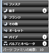 コンポーネントのカテゴリ(例: 継手)で使用可能なコンポーネント タイプ(例: エルボ、カップリング、またはティー)が表示されます。