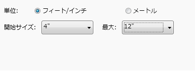 - [最小サイズ]で、サイズ範囲の初期値を指定します(4" から 12" など)。