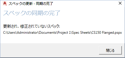 注: スペックとカタログを同期するには、スペック ファイルが閉じていることと、スペック ファイルに対する排他アクセスが必要です。