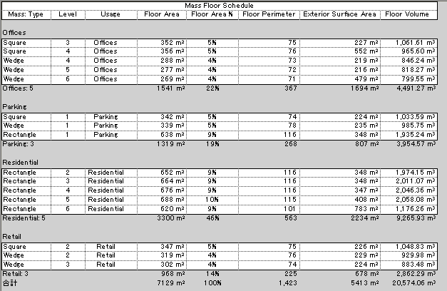 マス床を作成した後、マス床集計表を作成して用途を割り当てたり、設計を解析します。