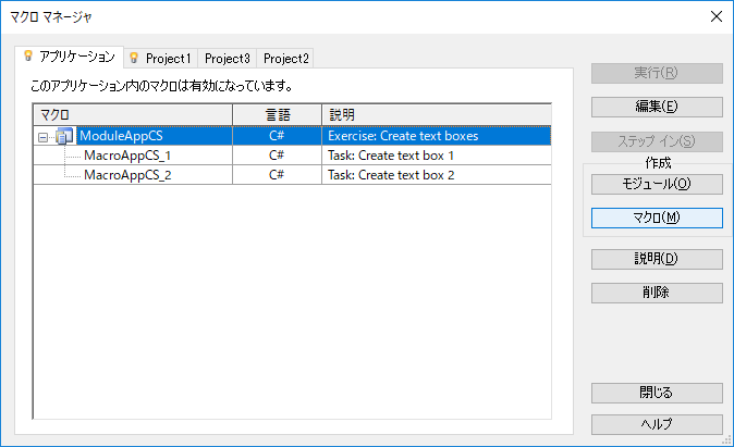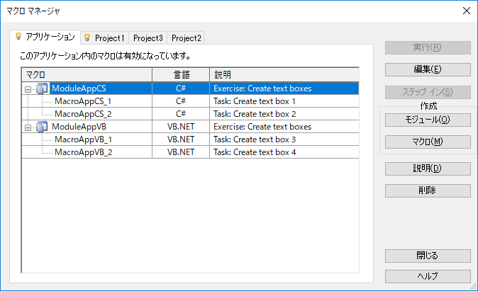 マクロを管理、実行するには、マクロ マネージャを使用します。