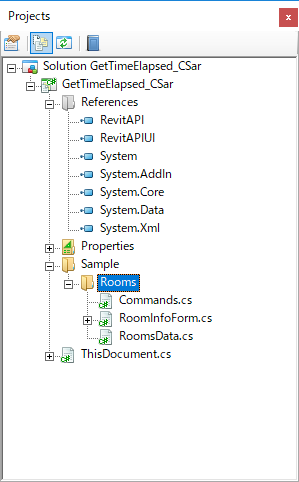 このトピックでは、ファイル システム上のリソースに対応する IDE プロジェクト内のフォルダを作成する場所、必要な参照を追加する方法、およびプロパティを設定する方法について説明します。SDK に付属の Revit_Macro_Samples.rvt に組み込まれたマクロでは、これらの手順は完了しています。