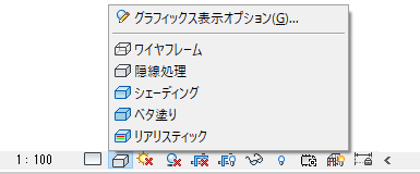 3D ビューの背景を指定するには、ビュー コントロール バーで[表示スタイル]アイコンをクリックし、[グラフィックス表示オプション]をクリックします。