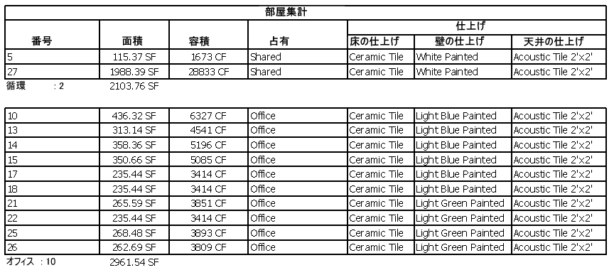 モデルで建物コンポーネントのプロパティを変更すると、関連している集計表が自動的に更新されます。