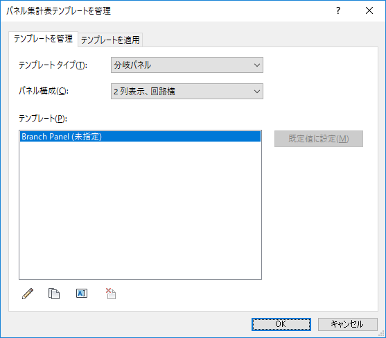 [パネル集計表テンプレートを管理]ダイアログを使用すると、パネル集計表テンプレートの編集、複製、削除、適用を行うことができます。また、既定のテンプレートを指定することもできます。