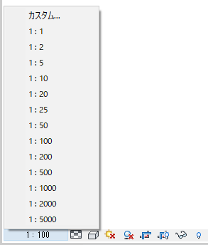 - ビューのスケールを変更する。ビュー コントロール バーの[スケール]で、目的のスケールを選択します。