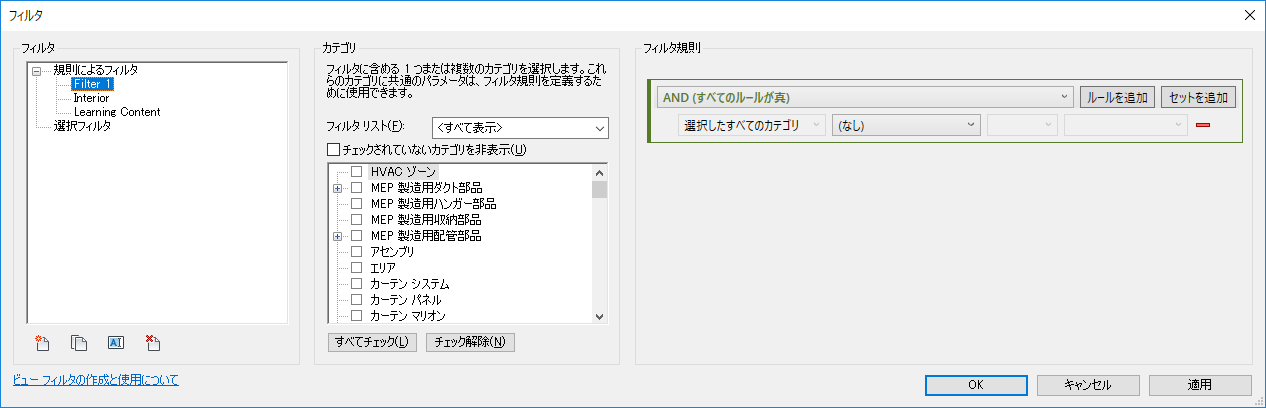 カテゴリとパラメータの値に基づいて要素を識別するビュー フィルタを作成します。