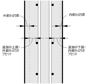 | 追加の下部/内部かぶりオフセット | 下部/内部のかぶり厚からの追加のオフセットを指定します。これにより、複数の鉄筋要素を、一度にさまざまな面配筋のレイヤに配置できます。 |