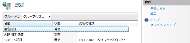 - [認証]を右クリックし、[編集]を選択して、IIS で使用する匿名アカウントのユーザ名を表示します。このアカウントがサーバ上に存在することを確認します。