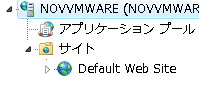 - [インターネット インフォメーション サービス]ダイアログ ボックスで、ローカル コンピュータ名 ► [サイト]を展開し、[既定の Web サイト]をクリックします。