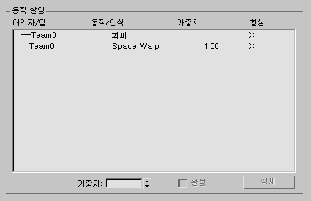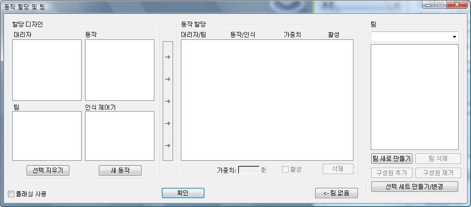 주: 동작 할당 그룹 아래의 팀 없음/팀 버튼을 사용하여 이 그룹 상자의 표시를 토글할 수 있습니다.