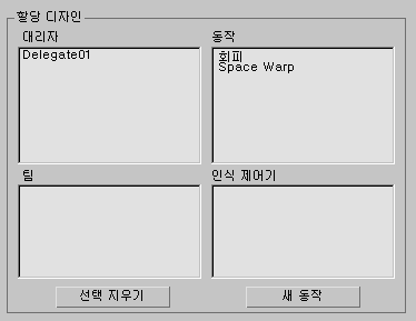 - 할당 디자인 그룹에서 하나의 대리자 또는 팀과 하나 이상의 동작이나 하나의 인식 제어기를 선택합니다.