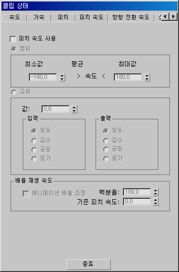 이것을 설정하면 모션 합성 엔진이 상태를 활성화시킬지 여부를 결정하는데 있어 피치 속도를 고려합니다.