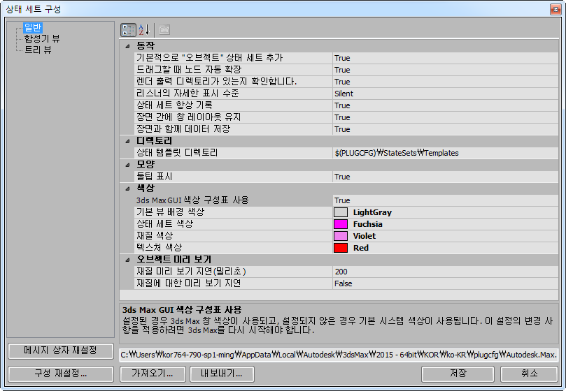 - 현재 상태 세트 구성 파일의 이름 및 위치를 표시합니다.