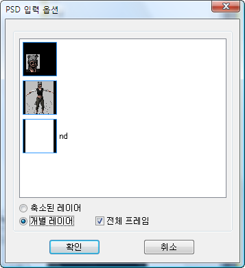 PSD 파일을 비트맵으로 열면 이미지 사용 방법을 선택할 수 있는 대화상자가 나타납니다.
