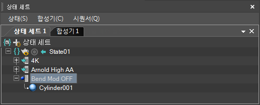- 마우스 오른쪽 버튼 클릭 메뉴를 사용하거나 트리 뷰에서 합성기 뷰로 드래그하여 상태를 추가합니다.