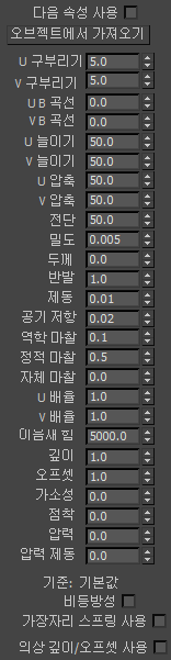 이 롤아웃의 컨트롤을 사용하여 개별 그룹에 대한 의상 특성을 지정하려면 설정합니다. 기본적으로 해제되어 있습니다.