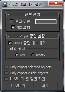 - 지정한 데이터 유형을 사용하여 PhysX 형식으로 장면을 저장합니다(다음 참조).