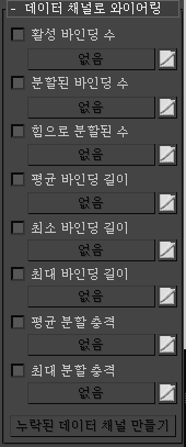 - 현재 프레임에서 각 파티클의 바인딩을 분할한 최대 힘 값을 제공하는 실수 데이터 채널입니다.
