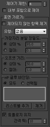 - 설정하면 제어 파티클과 관련되지 않은 점이 해당 면과 함께 표면에서 제거됩니다.