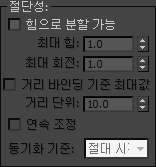 거리 바인딩 기준 최대값 옵션의 효과를 보여 주는 비디오는 거리 바인딩 기준 최대값을 참조하십시오.