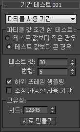 - 파티클 사용 기간프레임에 있는 각 파티클의 현재 사용 기간을 테스트합니다. 기본 테스트 유형입니다.