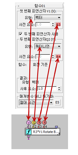 입력 커넥터(아래) 및 관련 매개변수(위)가 있는 하위 연산자