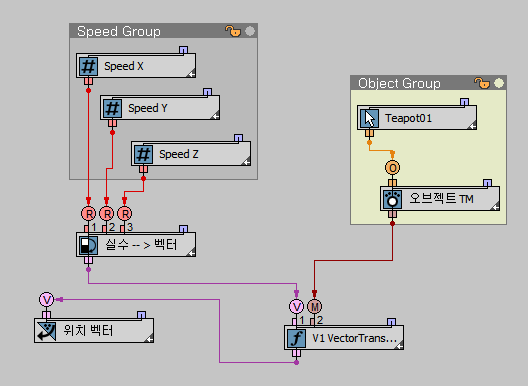 그룹은 그룹화된 하위 연산자가 포함된 보이는 형태의 창을 사용하며, Windows의 모든 표준 창처럼 위치와 크기를 조정할 수 있습니다. 창 제목 막대에는 그룹 이름과 두 개의 아이콘(잠금 아이콘과 작은 원형 색상 견본)이 포함됩니다. 잠겨 있으면 하위 연산자를 그룹 창 내에서 이동할 수 없으며 크기도 조정할 수 없습니다. 그러나 강조 표시하고 매개변수를 편집할 수는 있습니다. 창 배경 색상을 변경하려면 색상 견본을 사용합니다.