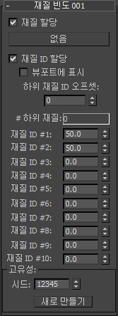 재질 ID의 실제 순서는 임의로 할당되며 고유성 시드 설정을 변경하여 바꿀 수 있습니다.