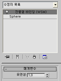 잔물결 공간 왜곡은 잔물결 바인딩 수준에서 바인딩된 각 오브젝트의 스택에서 개별적으로 조정할 수 있는 유연성 매개변수도 갖습니다. 이 매개변수는 각 바인딩에 속하며 잔물결 왜곡 매개변수와 함께는 표시되지 않습니다.