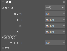 - 상자를 선택하는 경우 치수를 설정합니다.