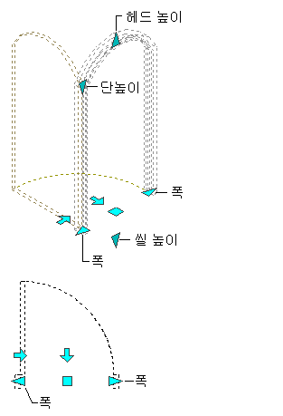 AutoCAD Architecture 2021 toolset의 객체에는 해당 객체를 조작하는 데 사용할 수 있는 그립이 있습니다. 그립 위에 커서를 올려놓으면 그립의 기능을 설명하는 툴팁이 표시됩니다.