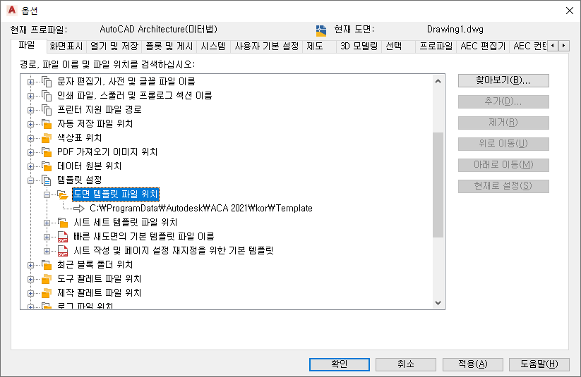 “옵션” 대화상자에서 템플릿 파일 위치를 설정합니다.