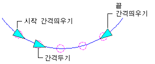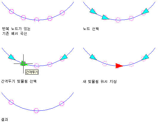 그립을 사용하여 배치 곡선의 노드 간격두기 변경