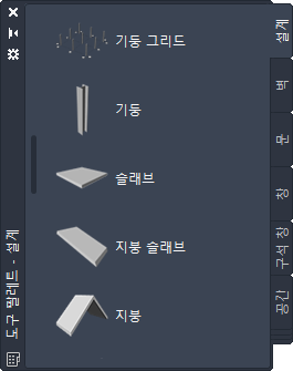 슬래브 및 지붕 슬래브 도구가 들어 있는 도구 팔레트