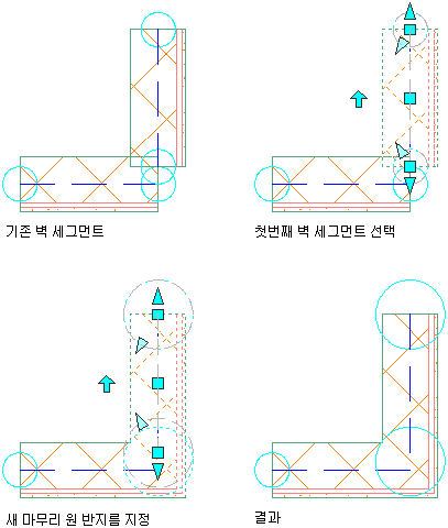 올바른 마무리를 위해 벽 마무리 원 반지름 조정