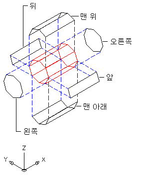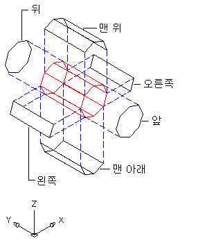원하는 돌출 방향은 프로파일에서 돌출할 객체에 따라 다릅니다. 예를 들어, 난간은 X X 방향으로 돌출되어 있으며, 난간 기둥은 Z 방향으로 돌출되어 있습니다. 사용자 문과 창 쉐이프는 Y 방향으로 돌출되어 있습니다.