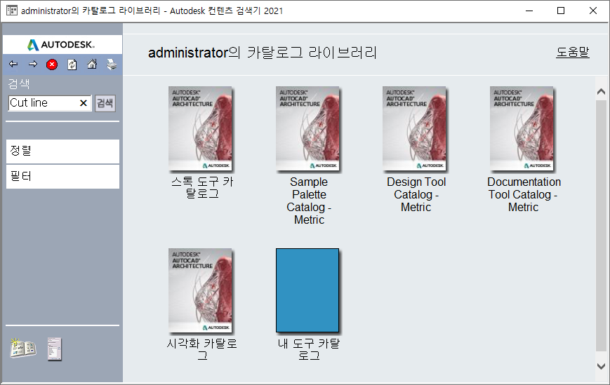 다음 절차에 따라, AutoCAD Architecture 2021 toolset이 현재 열려 있지 않더라도 Windows 명령 프롬프트에서 컨텐츠 검색기를 여십시오.