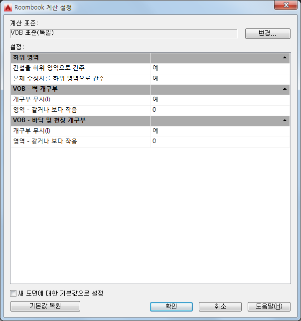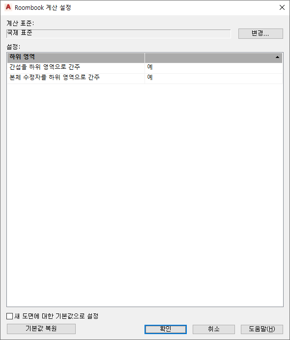 설정은 현재 도면에 저장됩니다. 새 도면에는 설정을 변경할 때까지 기본 설정이 적용됩니다.