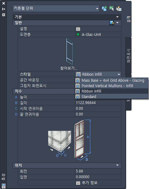 다음 과정에 따라 커튼월 단위에 대한 서로 다른 스타일을 선택하십시오.