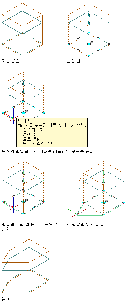 모서리 그립을 사용하여 공간 경계의 모서리에 정점 추가
