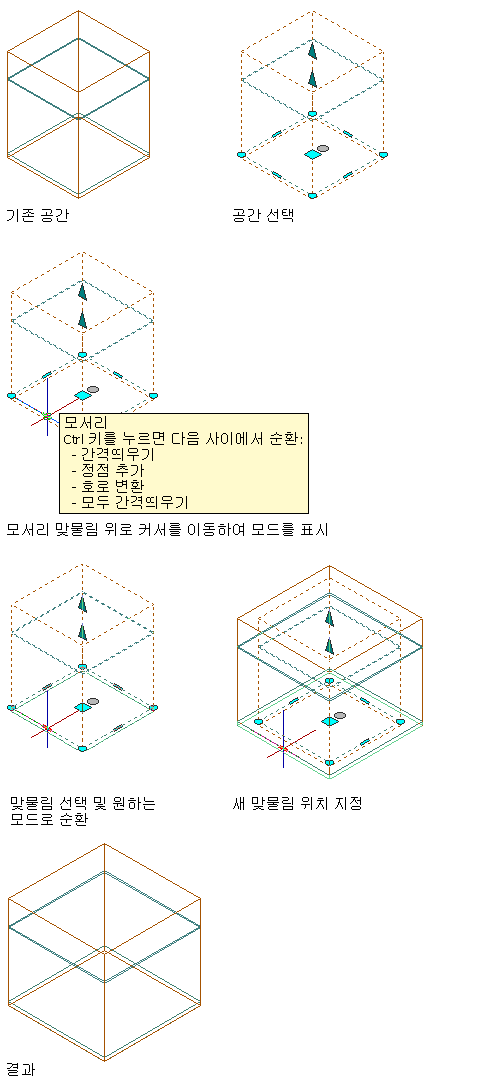 모서리 그립을 사용하여 공간 경계의 모서리 간격띄우기