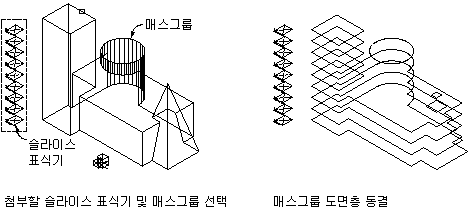 다음 과정에 따라 매스 요소 또는 매스 그룹을 절단에 부착하여 건물 바닥판을 작성하십시오. 매스 요소 및 매스 그룹이 들어 있는 도면층을 동결하여 절단만 표시할 수 있습니다.