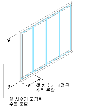 수직 분할을 정의하는 경우 셀 치수는 멀리언 사이의 셀 길이입니다. 수평 분할을 정의하는 경우 셀 치수는 셀 높이입니다.