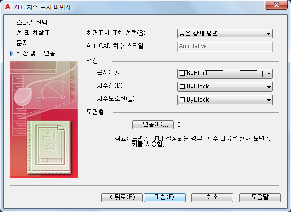 주: 특성 소스가 시스템 기본값으로 설정된 치수 스타일을 선택한 경우 경고 메시지가 나타납니다. 스타일을 편집하려면 마법사를 닫고 스타일 관리자에서 스타일을 연 다음 화면표시 특성 소스를 스타일 재지정으로 설정합니다.