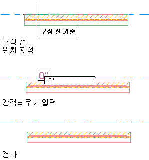 직선 벽 세그먼트에 기반한 지정된 간격띄우기로 구성선 그리기