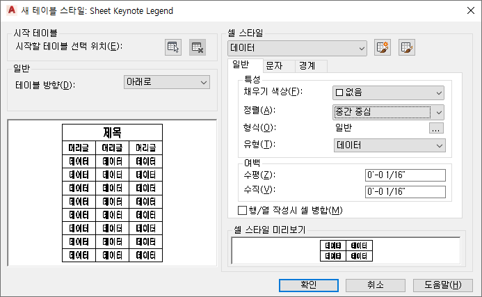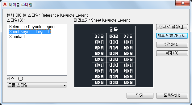 키노트 범례는 AutoCAD 테이블 스타일을 사용합니다. 다음 과정에 따라 사용 가능한 테이블 스타일을 수정하십시오.