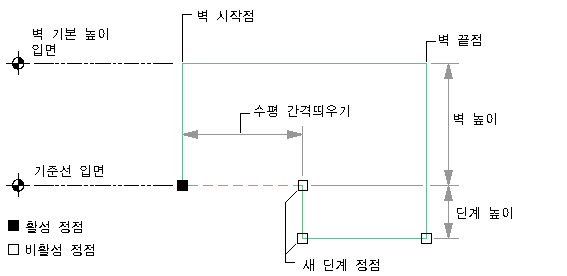 다음 과정에 따라 벽의 지붕 선 또는 바닥판 선에 단을 추가하십시오. 특성 팔레트의 지붕 선/바닥판 선 워크시트에서 계단을 추가할 수도 있습니다.