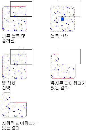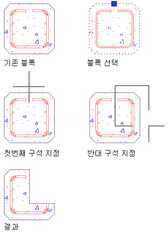 직사각형 구석을 지정하여 블록의 부분 빼기